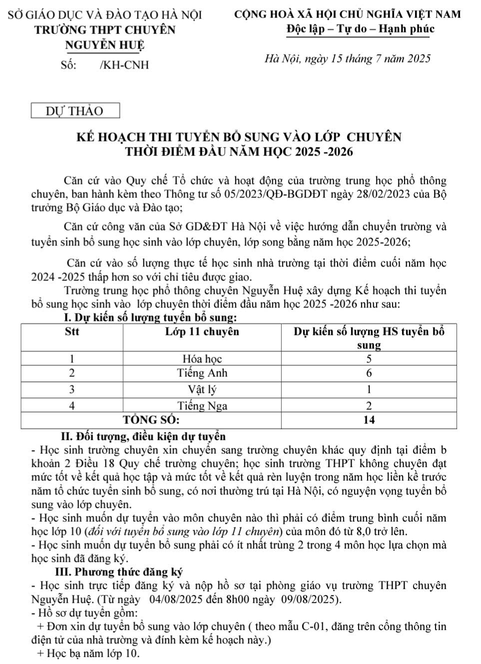 Cam kết chất lượng giáo dục của trường THPT chuyên Nguyễn Huệ năm học 2024-2025